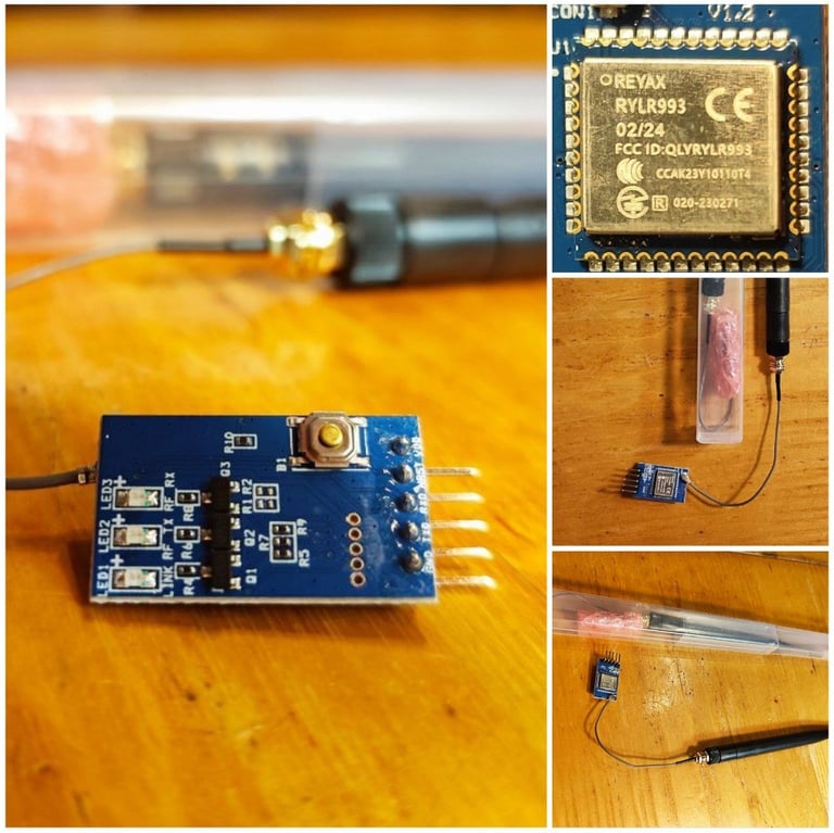 Deux modules RYLR993 Lite et deux antennes 868/915 MHz (U.FL → SMA), qui sont de très belle facture.